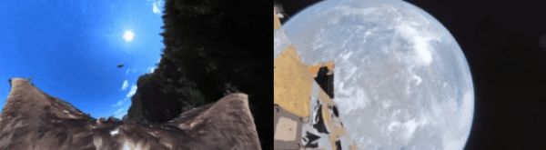 影石将 X 系列相机绑在老鹰身上拍摄的画面(左)