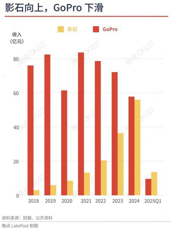 影石服务的也是一个久已存在的需求:记录并分享运动和生活。成立更早的 GoPro 当年还有 Instagram 等社交媒体爆发的加持,而到影石推出主力产品的 2018 年,移动互联网从 0 到 1 的极速增长期也已过去。