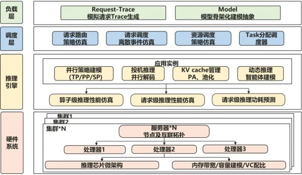 分析硬件架构:从芯片微架构(如3D Cube张量加速引擎)到整个集群的网络拓扑(如多台服务器怎么互联),全方位模拟硬件性能。