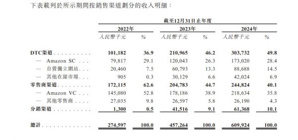 卧安机器人将产品向海外布局,前期主要依靠Amazon平台。依托Amazon平台,其产品已销往日本、欧洲、北美等90多个国家及地区。2022年、2023年及2024年,卧安机器人在该平台收入分别占总收入的81.9%、65.2%、64.2%,相应平台佣金费用和广告、销售人员开支、推广及业务发展费用在销售及分销开支中占比超八成。