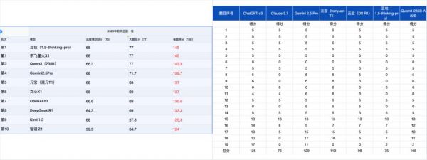 如果非要用“高考成绩”看模型能力,应该看梯队而非排名,几分的差距不能充分代表能力差距。