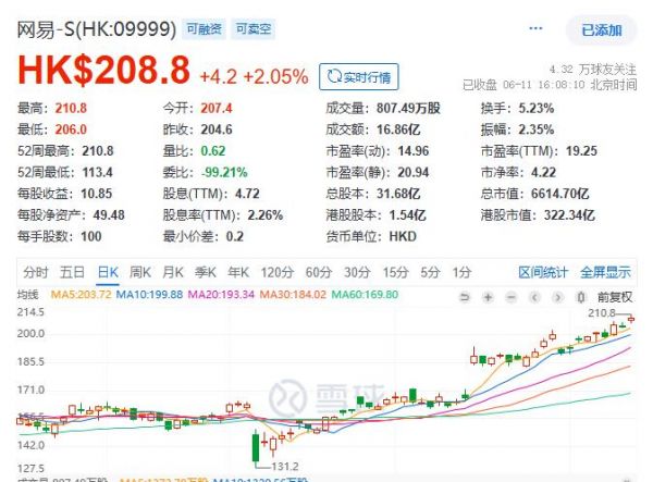 资本市场上,网易最近是高歌猛进,一路平推过去。相比较今年年初,股价暴涨53%,市值爬升至6600亿港元左右,距离昔日巅峰,仅一步之遥。相比较去年11月的低点,涨幅更是高达84%,市值更是飙涨约3000亿港元。