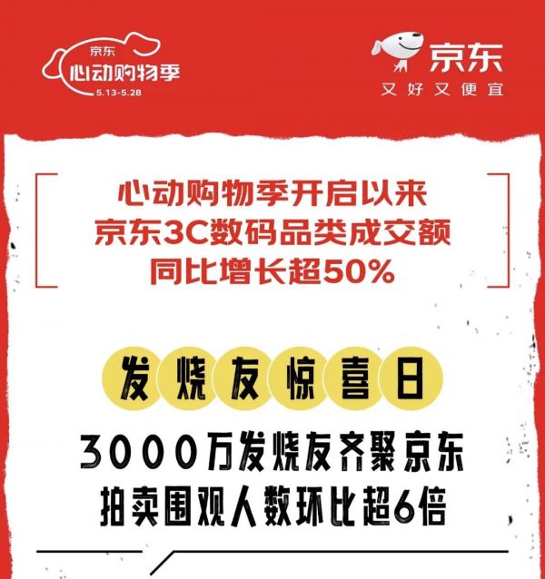 比如,5月22日的京东“发烧友惊喜日”,以“京东拍卖”为核心玩法,便精准聚焦了3C数码领域爱好者。