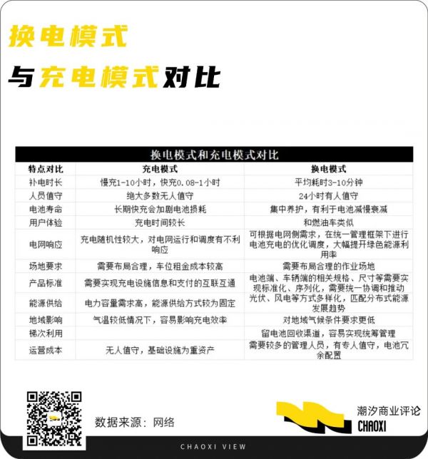 由于在产业链、技术方向、续航方式和服务场景的诸多不同,也可以将其与充电模式进行简单对比,两者之间的不同差别明显: