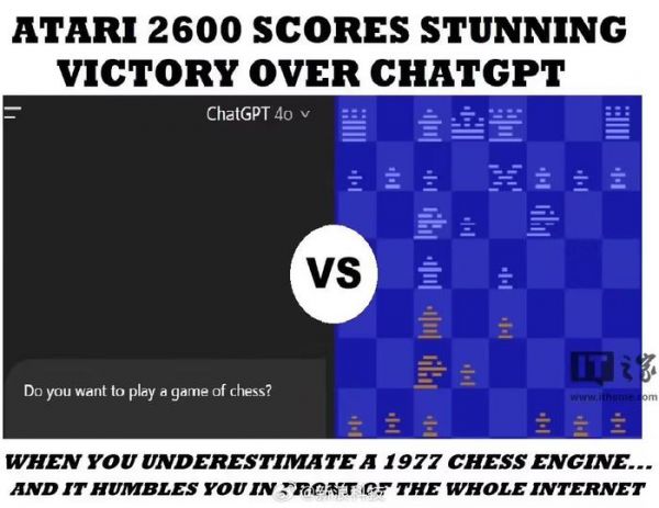 【#ChatGPT下象棋被48年前游戏机吊打#】在人工智能领域,ChatGPT 作为 OpenAI 推出的聊天机器人一直以其强大的文字生成能力受到关注。然而近期一项独特的实验显示,当 ChatGPT 与一款诞生于 1977 年(48 年前)的经典游戏机雅达利 2600(Atari 2600)对弈国际象棋时,却遭遇了意想不到的失败。