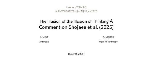 Open Philanthropy 的研究员 Alex Lawsen 近日发布反驳文章《The Illusion of the Illusion of Thinking》,认为苹果的研究结果更多反映了实验设计的缺陷,而非模型推理能力的真正局限。他在文章中直言,苹果的研究混淆了输出限制和评估设置问题,与实际推理失败无关。