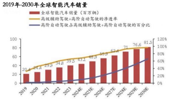 夸张一点说,未来汽车市场是智能汽车的天下。2023-2030年全球智能汽车销量有望从3950万辆持续增加到8150万辆,有成倍的扩容空间。