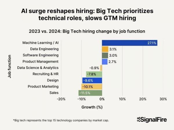 我深入研究了这份报告后发现,这背后的原因比表面看起来要复杂得多。SignalFire 通过其 Beacon AI 平台追踪了超过 6.5 亿专业人士和 8000 万个组织,为我们提供了前所未有的行业洞察。他们揭示的不仅仅是招聘数字的下降,更是整个科技人才生态系统的重构。从 AI 实验室的人才争夺战,到地理中心的重新洗牌,再到新兴职位的诞生,这份报告描绘出了一幅科技行业人才格局正在发生巨变的完整画面。