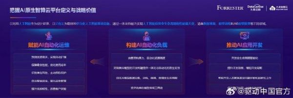 全球知名调研机构 Forrester 在会上发布最新研究成果,预测 2025 年全球企业将积极拥抱 AI 原生智算云平台,为数字化创新构筑坚实基础。同时,Forrester首次定义AI 原生智算云平台,指出AI 原生智算云需具备三大底层能力: 构建 AI 自动化负载、赋能 AI 自动化运维、推动 AI 应用开发。