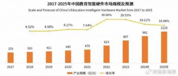把时间拉长来看,2024年,国内学习机的年销量接近600万台,增速25.5%。并且预计今年继续保持20%以上的增速,销量将超过700万台,市场规模将超千亿元。据测算,到2025年,我国的教育智能硬件市场规模将超过1000亿元人民币。