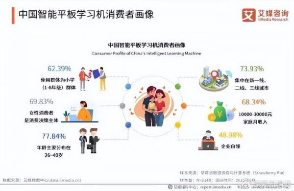 艾媒咨询的数据显示,中国智能平板学习机使用群体以小学生(62.39%)为主,多数来自新一线、二线、三线城市(73.93%),其父母普遍职业为白领(48.98%)。艾媒咨询分析师认为,出于对子女教育的重视,企业白领人群是学习机的核心消费者,且女性在消费决策中担任更积极的角色。