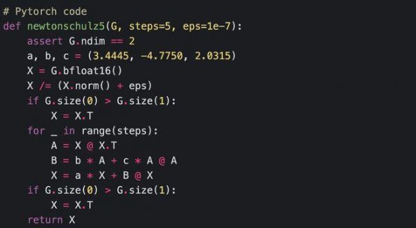 其中“NewtonSchulz5”定义为以下Newton-Schulz矩阵迭代: