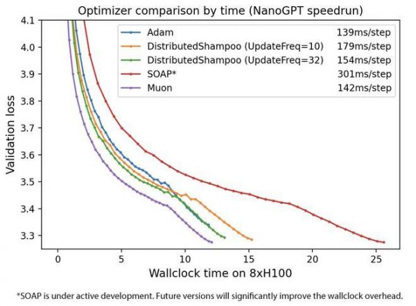 以下是针对NanoGPT快速运行的不同强力优化器的比较: