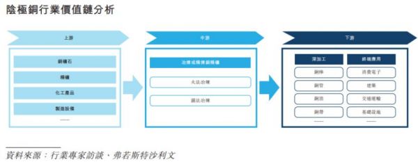 下游涉及阴极铜的深加工及终端应用,阴极铜是铜加工的核心原材料,经过加工制成铜棒、铜管、铜箔等,广泛应用于消费电子、基础设施、建筑、交通运输等行业,相关企业有正威集团、海亮集团有限公司等。