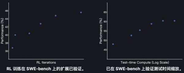 ▲闭源模型在SWE-bench上的性能已得到验证通过大规模强化学习进行了优化。它能够自主修补Docker中的真实存储库,并且只有当整个测试套件通过时才会获得奖励。这确保了解决方案的正确性和稳健性,并符合现实世界的开发标准。