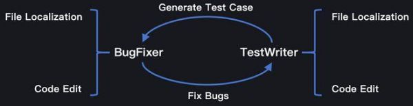 成功修复错误的补丁(patch)应能通过准确反映该错误的单元测试。同时,复现错误的成功测试应引发断言错误,并在将正确的错误修复补丁应用到代码库后通过。这致使BugFixer和TestWriter互补,一个足够强大的编程大语言模型应该在这两个方面都表现出色。