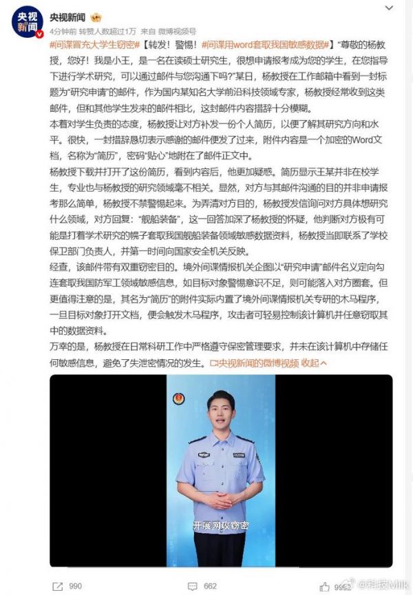 间谍利用word文档套取我国敏感数据,学者保密意识防范成功