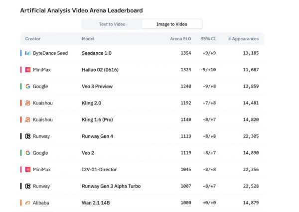 MiniMax视频模型Hailuo 02位列Artificial Analysis Video Arena榜单第二