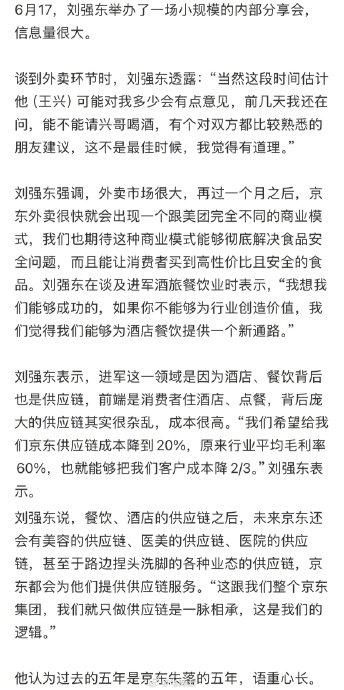 京东做外卖业务前,刘强东还约了美团王兴吃饭