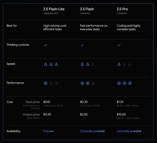 Gemini 2.5 Flash-Lite预览版现已在谷歌AI Studio和Vertex AI中上线,同时还提供2.5 Flash和Pro稳定版。2.5 Flash和Pro版本均可在Gemini应用中访问。谷歌还为谷歌搜索功能引入了2.5 Flash-Lite和Flash的定制版本。
