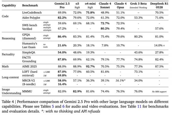 不过,在数学方面,Gemini 2.5 Pro的表现略逊色于OpenAI o4-mini,图像理解方面分数略低于OpenAI-o3 high。