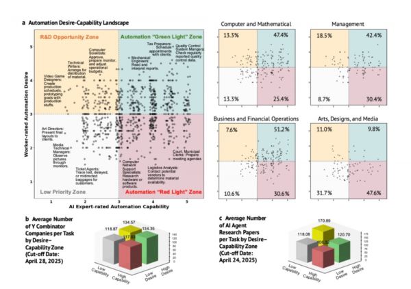 2025年1月到5月间,斯坦福大学的研究团队完成了一项本应在AI热潮开始时就进行的调查。他们采访了1500名美国员工和52名AI专家,评估了104个职业中的844项具体任务。这项由经济学家Erik Brynjolfsson和Yijia Shao领导的研究,第一次系统地量化了一个简单却被忽视的问题:人们到底想要什么样的AI?