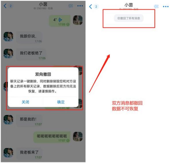 此外,这类加密聊天软件还具备双向撤回功能。双方都能一键撤回所有消息,从源头上杜绝了信息被对方泄露的风险,让我们的隐私得到双重保障。