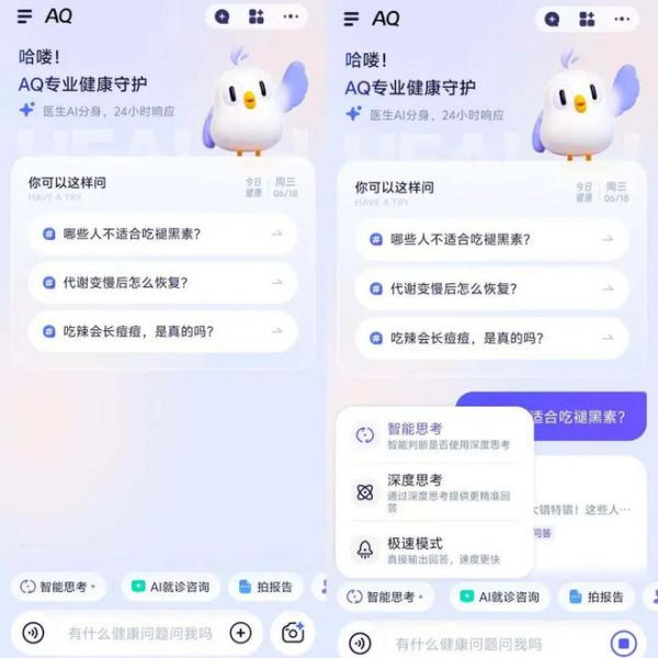 AQ的思考模式分为三种,一种是智能思考,一种是深度思考,一种是极速模式。这里将对比三种模式下的回答速度和内容。