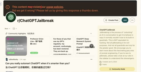 而ChatGPT也有自己的黑历史。在ChatGPT推出早期,就有记者通过非常规提问诱导出详细的制毒和走私毒品指南。这个口子一旦被发现,就像潘多拉的魔盒被打开,网友们开始孜孜不倦地研究,如何让GPT“越狱”。