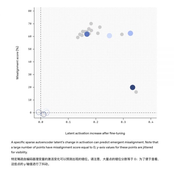 OpenAI团队通过一种可解释性技术手段,找到了模型内部与这种“不守规矩”行为高度相关的一个隐藏特征。