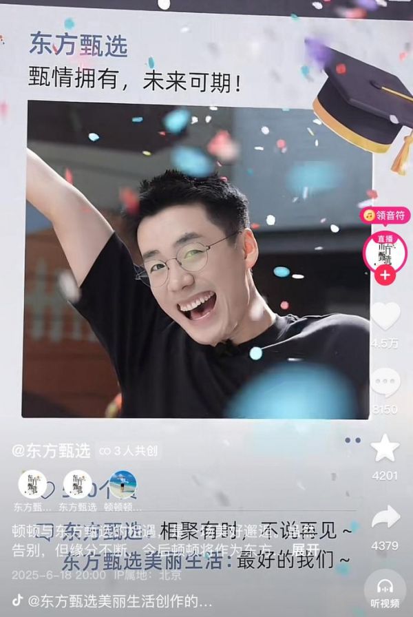继董宇辉后,东方甄选又一明星主播顿顿离职