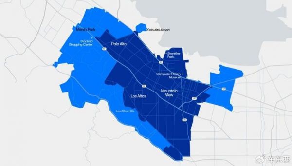 ▲Waymo在硅谷的服务范围