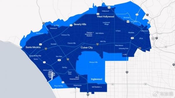 洛杉矶服务网络则将于6月18日完成升级,新增Playa Del Rey、Echo Park、Ladera Heights、Silverlake、Inglewood等区域,并首次将加州大学洛杉矶分校纳入服务半径,同时覆盖日落大道等标志性地段。