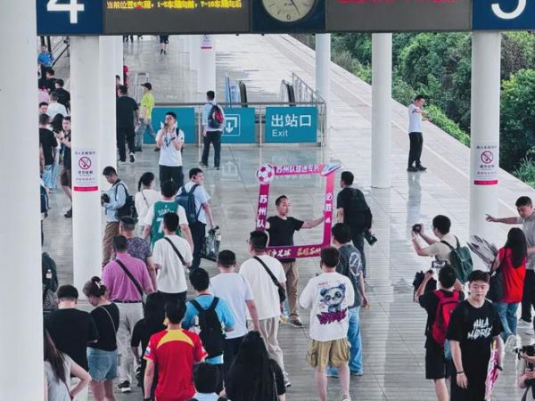 “火药味”通常从客队高铁站的出发大厅就开始了。6月15日下午,苏州园区站集结的500名球迷开始统一“对战”连云港的口号——“踏平花果山,活捉弼马温”,这源自花果山就在连云港,也被戏称为孙悟空的“老家”。