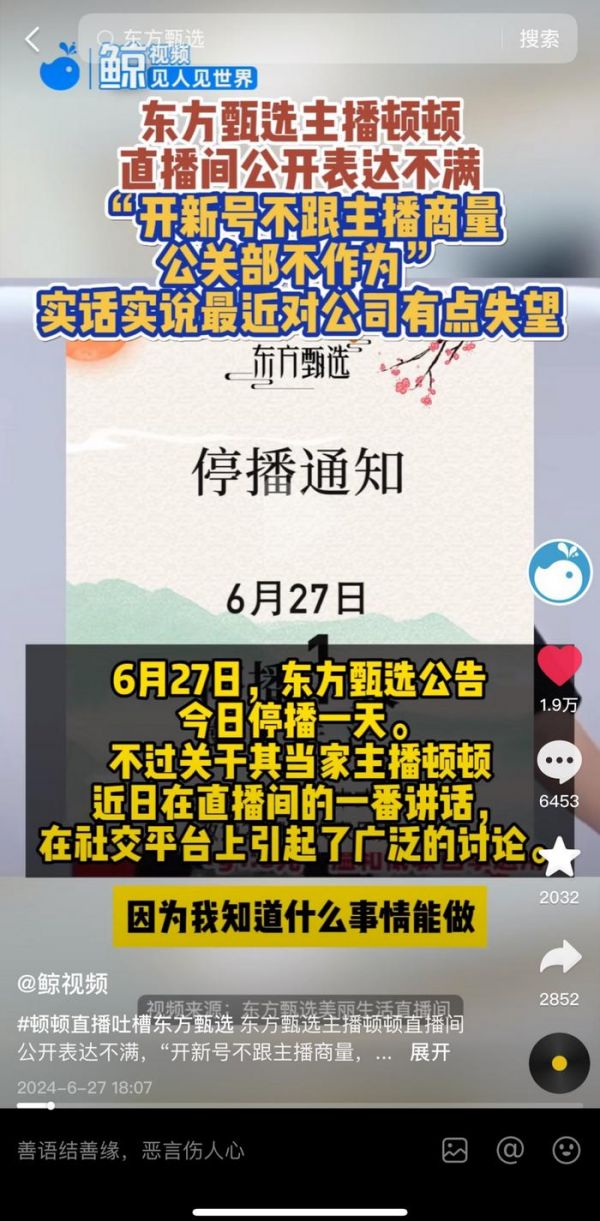 继董宇辉后,东方甄选又一明星主播顿顿离职