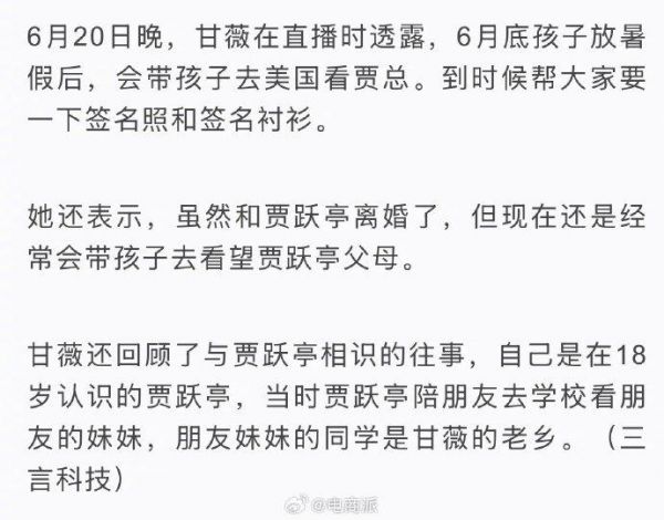 #甘薇称将赴美国看贾跃亭# 甘薇自曝已8年未见贾跃亭,月底将带着孩子去美国看贾跃亭。