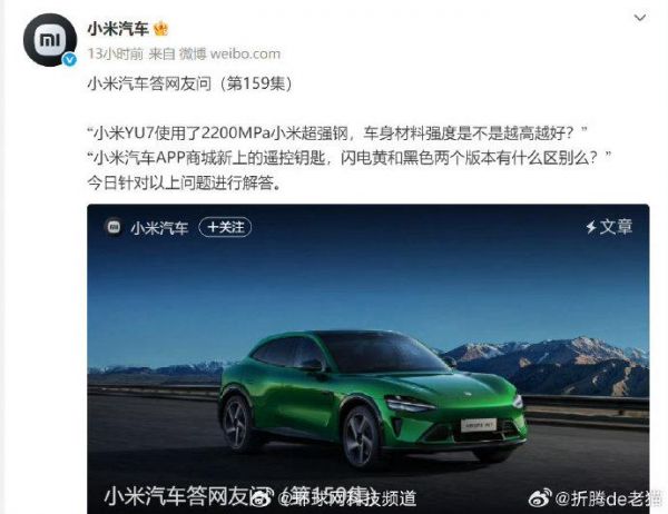 【#小米严禁以任何形式诋毁竞品#】#小米汽车辟谣销售诋毁其他品牌#@小米汽车 发布小米汽车答网友问(第159集),回应近期网络上流传的一则疑似小米销售人员与用户交流小米YU7时诋毁其他品牌产品的事件,经内部调查确认涉事人员并非小米员工,且小米严禁员工以任何形式诋毁竞品,同时提醒在新品上市前期外界虚假信息多,消费者要仔细甄别,以官方渠道信息为准,避免受误导或经济损失。