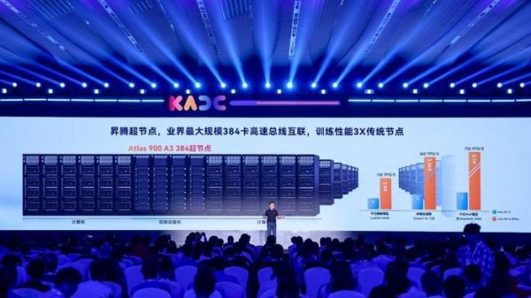 任正非提到的“用群计算补单芯片”,则是华为在基础研究之上攀登技术创新高峰的生动实践。这方面的典型代表当属火遍全球的昇腾384超节点,其将384颗昇腾AI处理器叠加到12个计算柜里,搭配4个总线柜,以集群方式组成业界最大规模超节点,如同一台强大的计算机运行,实现了远超传统的巅峰性能。