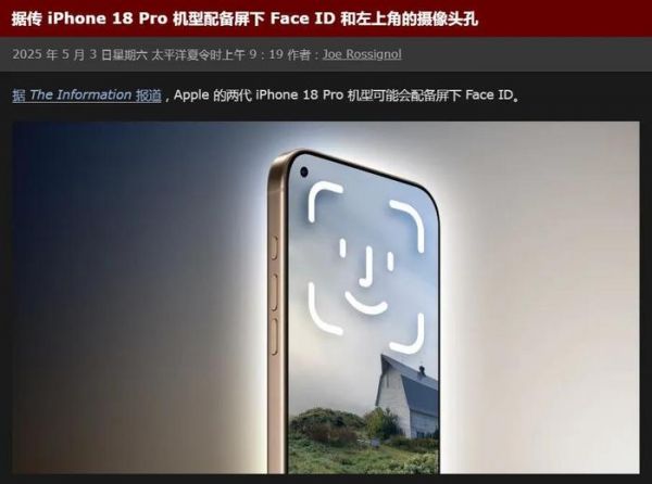 曝iPhone 18 Pro:屏下Face ID+单挖孔