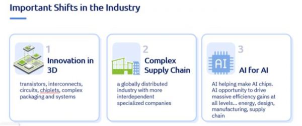 “AI for AI” 指的是对 AI 技术的需求来自消费领域。由于芯片性能更强、算法更优,AI 得到了进一步发展,这使得在 AI 的生产地——半导体制造和测试——使用 AI 变得更加容易。