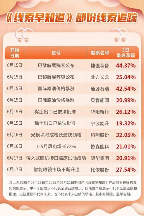 (以上内容及观点为越声理财《线索早知道》提供,仅供参考,不构成投资建议,投资者据此操作,风险自担)
