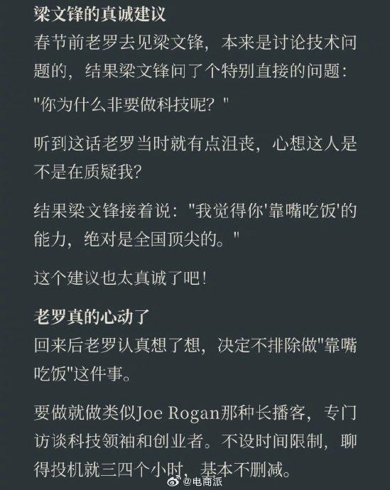 梁文锋建议罗永浩靠嘴吃饭引热议