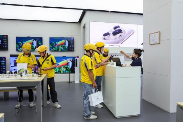 (外卖骑手为华为品牌门店配送即时零售订单)