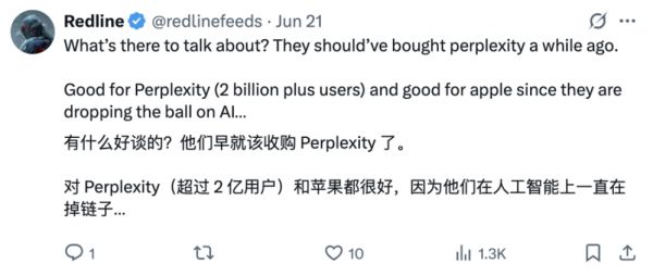 另一方面,哪怕苹果这边确实有收购的意愿,Perplexity并没有透露过想要出售的想法。