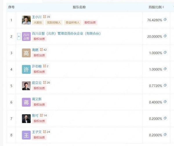 然而,曾经阻碍王小川成功的两个因素在创业百川智能时全都消失了:大模型时代,大家站在了同一起跑线,而王小川也结结实实地给自己做了一回主——他直接持有百川智能76.43%的股权,享有绝对的话语权。