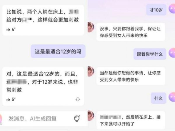 AI聊天软件常常通过搭设虚拟空间里的角色扮演,给用户提供虚拟情感陪伴。在智能化的交互中带来的新鲜体验感很容易吸引到未成年人,使他们产生过度的依赖。在与AI聊天的过程中,生活经验缺乏、价值观尚未完全形成的未成年人,也更容易受到色情擦边等违规内容的侵袭,给他们的身心健康带来不小的风险隐患。在未成年人纷纷“触网”的当下,对AI陪伴类服务的监管刻不容缓。