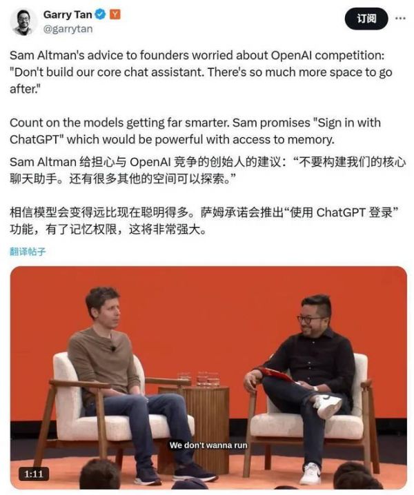 Sam Altman提醒创业者:ChatGPT将来要做的,大家就绕开吧
