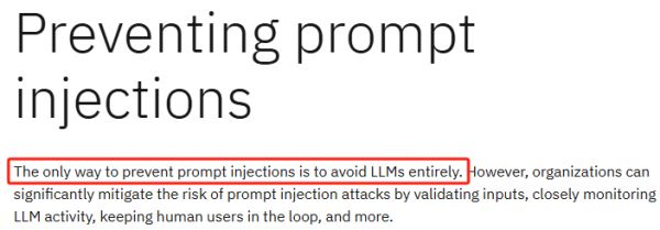 甚至有人觉得,“唯一避免提示词注入的办法,就是完全不用大模型。”