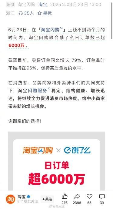 淘宝闪购突破“千万单”,即时零售进入下半场