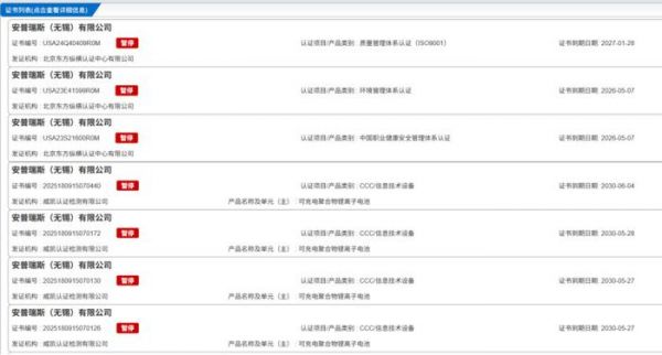 2025年6月初,国家市场监督管理总局的认证平台上,一场无声的“大清洗”悄然启动。安普瑞斯(无锡)有限公司名下近20张电池与电芯3C认证证书,被陆续标注为“暂停”状态。